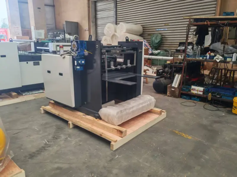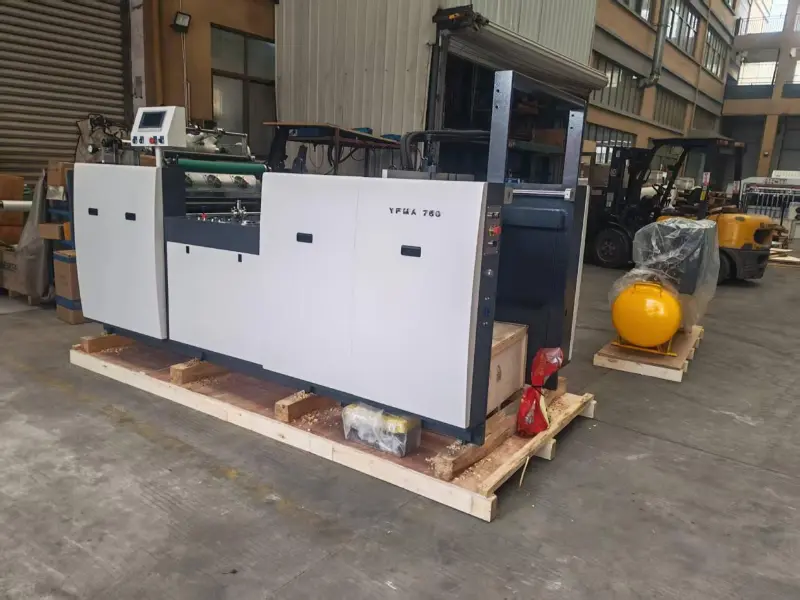 Kita ngemas YFMA-760Mesin Laminating Pre-Coating Otomatis, Pungkasan, bakal dikemas ing peti kayu.